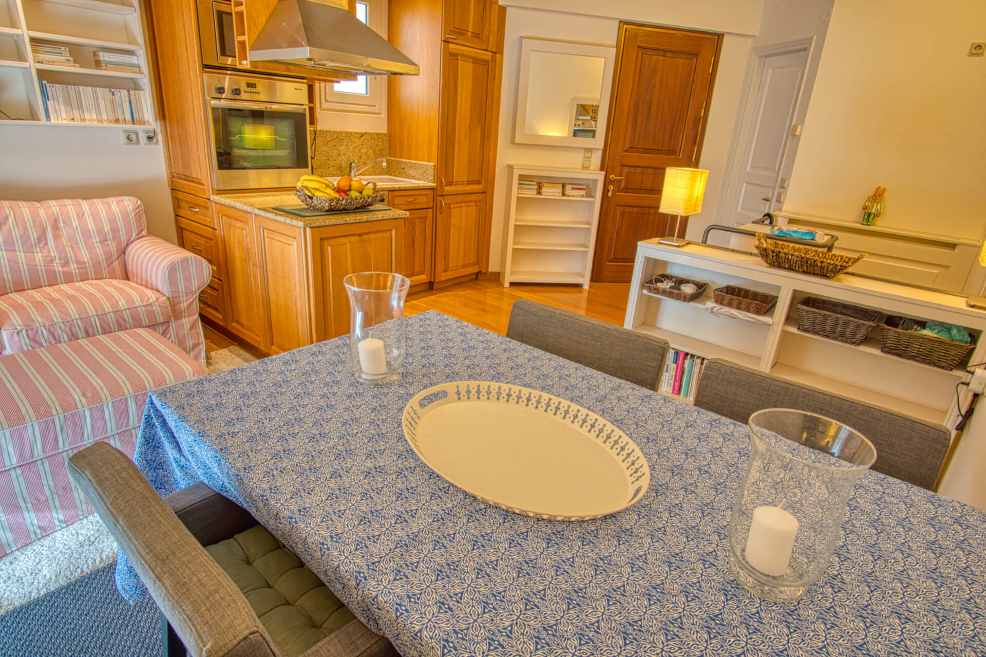 - Cosy open space featuring a fully equipped kitchen with a comfortable living and dining area opening on a small balcony.